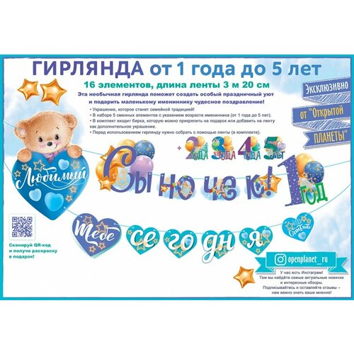 Гирлянда Любимый Сыночек, тебе сегодня .(сменные цифры), Голубой, 320 см, 1 шт.
