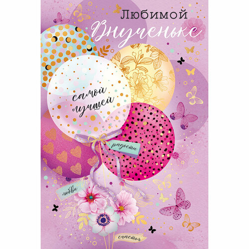Открытка, Любимой Внученьке (воздушные шары), Сиреневый, Металлик, 12*18 см, 1 шт.
