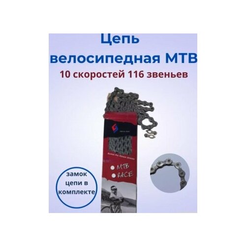 Цепь "GL" 10-скоростей, 116L звеньев (½'х¹¹/ ₁₂₈') с замком. (хром)
