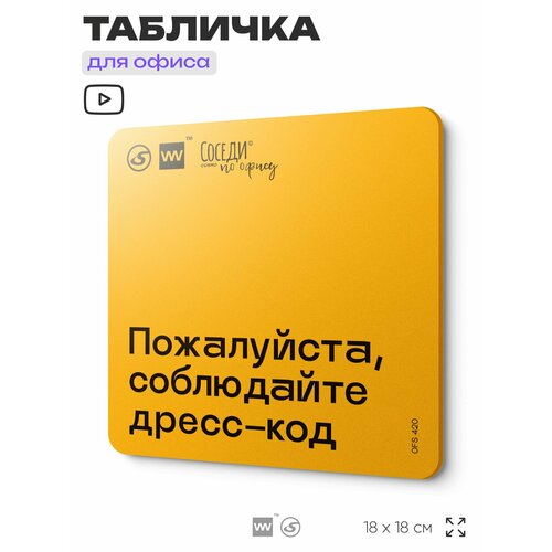 Табличка с правилами офиса "Соблюдайте дресс-код" 18х18 см, пластиковая, SilverPlane x Айдентика Технолоджи