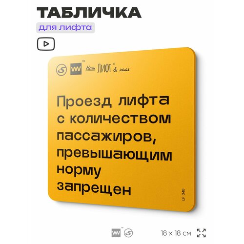 Табличка с правилами для лифта "Проезд лифта с количеством человек, превышающих норму, запрещен", 18х18 см, пластиковая, SilverPlane x Айдентика Технолоджи