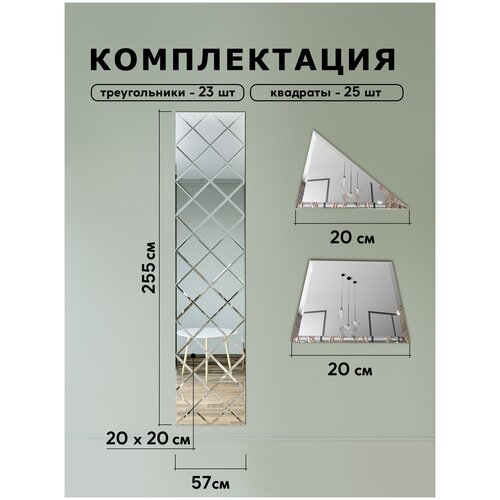 Зеркальное панно GlassMarket Зеркальное панно на стену из зеркальной плитки 20 см с фацетом 10 мм (размер 57х255см)