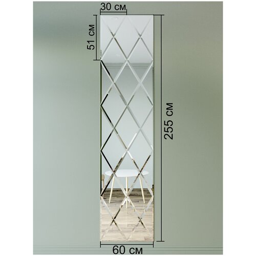 Зеркальное панно из зеркальной плитки ромб 30х51 см с фацетом 10 мм (размер 60х255см)