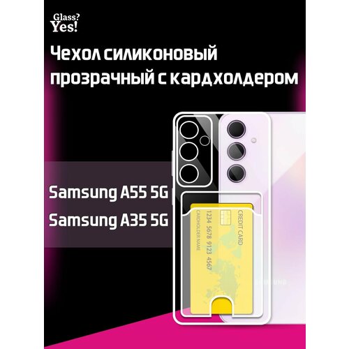 Чехол на Samsung A35 a 35 5G / Samsung A55 a 55 5G с картой прозрачный чехол силиконовый для Самсунг Галакси Гелакси а55 а 55 5 джи / Самсунг Галакси Гэлекси Галэкси а35 а 35 5 джи с карманом для карт