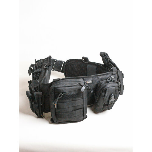 Разгрузочная тактическая поясная система со съёмными капами Gongtex/военный пояс с системой Molle черный