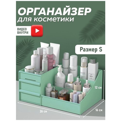 Органайзер для косметики ( Мятный, Размер S 26х16х12 см ) набор для мелочей контейнер для ванной комнаты ящик бокс пластиковый
