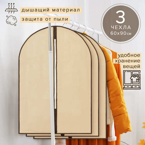 Чехол для одежды на молнии, 60х90 см, 3шт. GOOD SALE