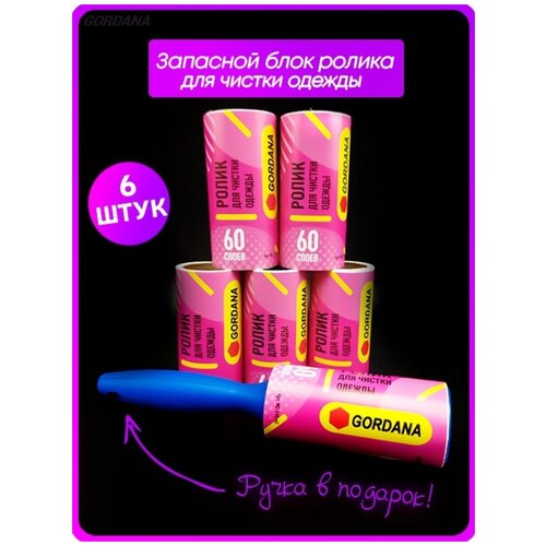 Запасной блок ролика для чистки одежды,6 шт по 60 листов и ручка синяя люкс