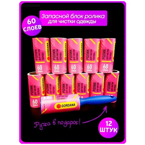 Запасной блок ролика для чистки одежды, 12 шт по 60 листов и ручка синяя люкс