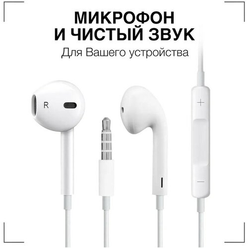 Наушники проводные / GQbox / Проводные Вкладыши Jack 3,5 / Гарнитура для Айфон и Андроид / Белые