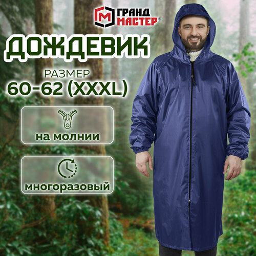 Плащ-дождевик женский,мужской Грандмастер,синий,молния,многоразовый,60-62XXXL,рост 170-176 ГрандМастер