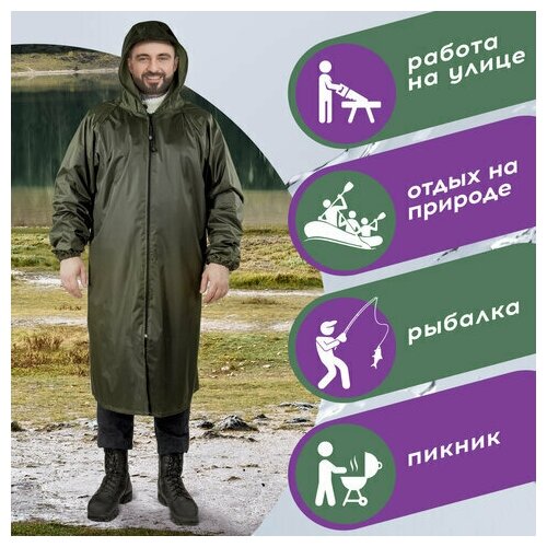 Дождевик-плащ хаки С Карманами многоразовый на молнии, размер 52-54, рост 170-176, Грандмастер, 610883