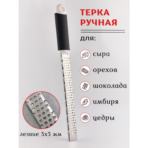 Терка односторонняя многофункциональная широкая, размер 13*7.2 см, общая длина 32.8 см, терка для сыра, цедры, шоколада, орехов, чеснока, овощей