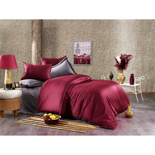 Комплект сатинового белья Alix бордовый-антрацит Grazie Home (бордовый), Евро (наволочки 50x70)