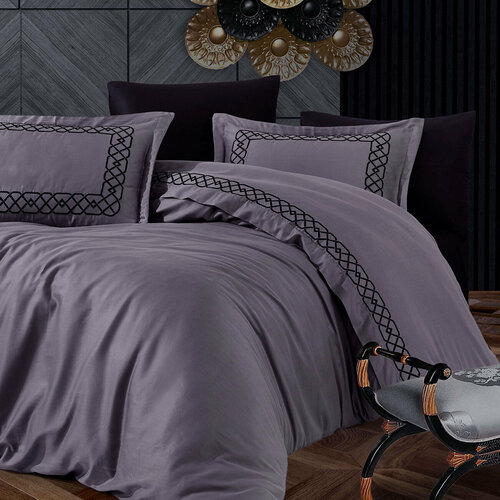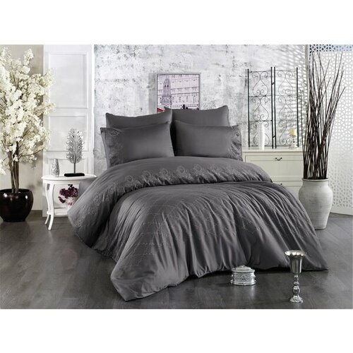 Постельное белье из сатина с вышивкой Vienza Grazie Home (антрацит), Евро (наволочки 50x70)