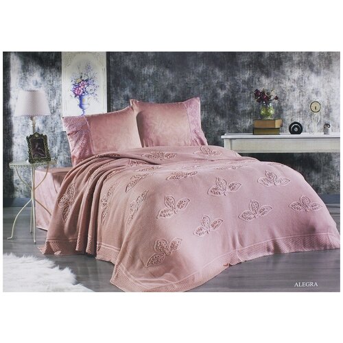 Простынь с наволочками + вязанный плед Alegra пудра Grazie Home (пудра), Евро