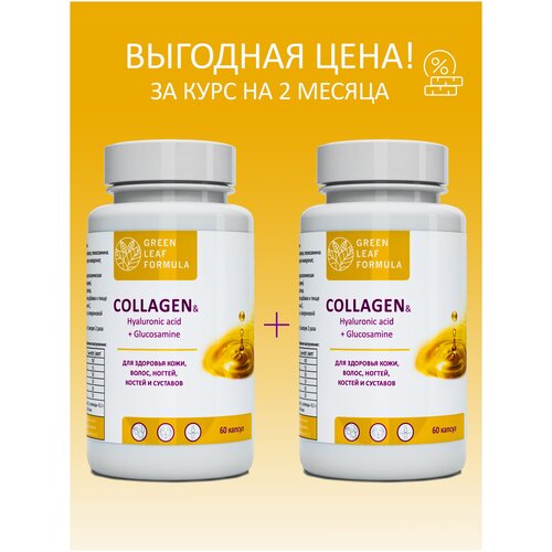 COLLAGEN капсулы (2 банки), Коллаген с витамином С, гиалуроновой кислотой и глюкозамином, для связок и суставов, витамины для кожи и волос