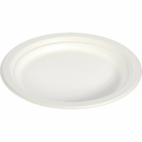 Тарелка одноразовая d-225мм, белая, сахарный тростник 50шт/уп