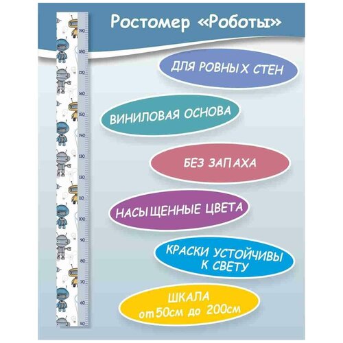 Ростомер Роботы 15 х 150 см, Ростометр для мальчика