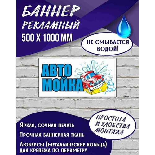 Баннер Автомойка 500 х 1000 мм , Вывеска для магазина