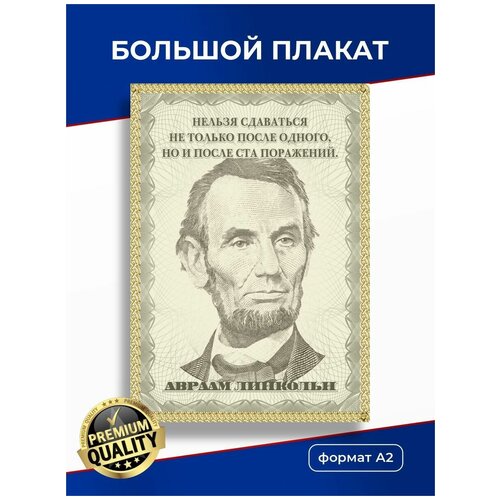 Плакат Авраам Линкольн Формат А2 , Мотивирующий постер