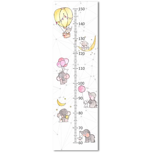 Ростомер "Слоники" 300 х 1000 мм Ростометр детский , Ростомеры детские , Ростометр в детскую комнату, ростомер детский на стену наклейка