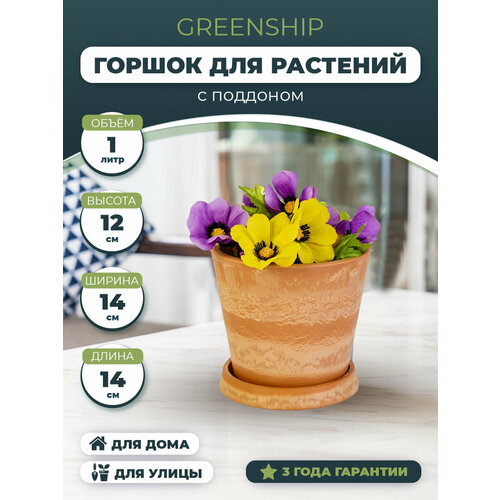 Горшок GreenShip классической формы с поддоном H-11T14, 1 литр, Оранжевый
