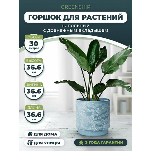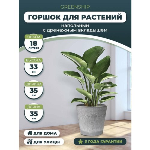 Цветочное кашпо GreenShip напольный с дренажным вкладышем H-16G30сс 18л светло-серый 1 шт.