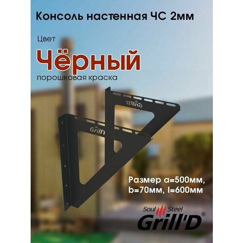 Grill`D Кронштейн настенный ЧС 2мм L400, черный (порошковая краска)