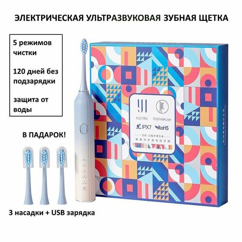 Электрическая зубная щетка, ультразвуковая, 5 режимов, 3 насадки, 120 дней без подзарядки