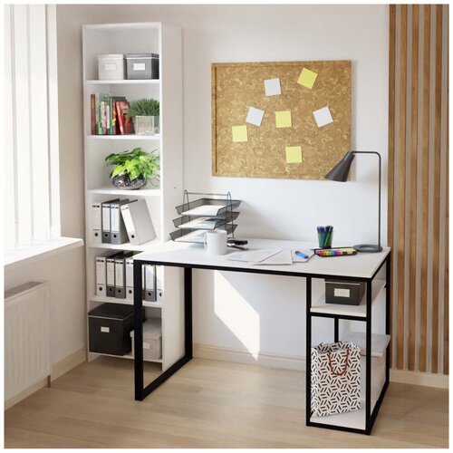Стол письменный с полкой, белый, компьютерный, офисный, лофт, 120x60x75 см, BRAUN loft, Гростат