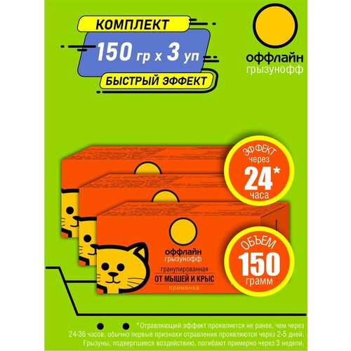 Комплект Грызунофф оффлайн Гранулы от грызунов 150 гр. х 3 шт.