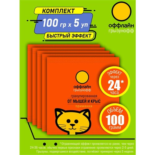 Комплект Грызунофф оффлайн Гранулы от грызунов 100 гр. х 5 шт.
