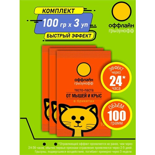 Комплект Грызунофф оффлайн Тесто брикет от грызунов 100 гр. х 3 шт.