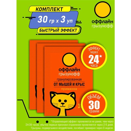 Комплект Грызунофф оффлайн Зерновая приманка от грызунов 40 гр. х 3 шт.
