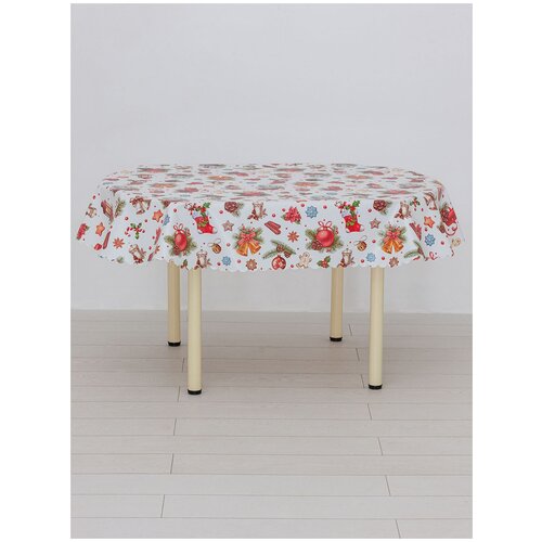 Скатерть-клеенка новогодняя GugulTeks, овал 140*180 см, ПВХ/Скатерть на стол для дома, кухни, гостиной, столовой/