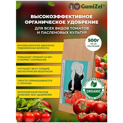 GumiZel Комплексное удобрение для томатов/баклажанов/перцев, пролонгированное Подкормка для почвы/рассады Органоминеральная добавка для огорода 500 г