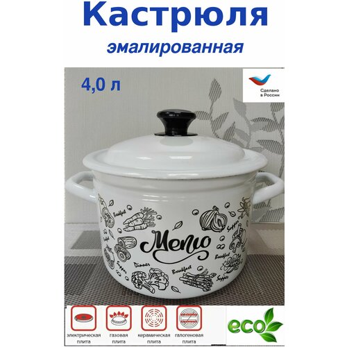 Кастрюля эмаль 4,0л. с рис. цилиндр борт