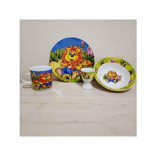 Паровоз и 3 вагона с картинками зверей, магнитный