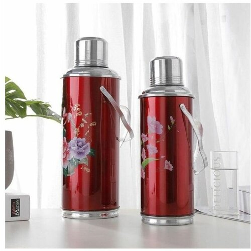 Термос СССР со стеклянной колбой 2 литра с рисунком цветы
