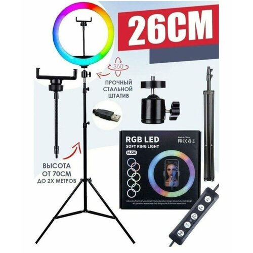 Лампа кольцевая с штативом цветная RGB 26см профессиональная