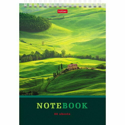 Блокнот A5, 80 листов на гребне "Зелёные долины", обложка мелованный картон, УФ-лак, жёсткая подложка