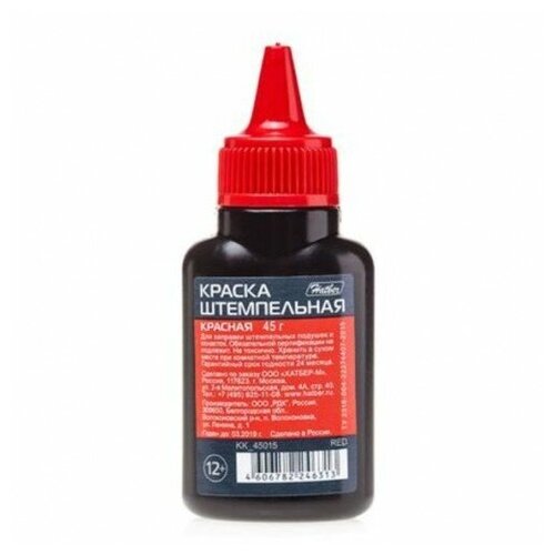 Краска штемпельная на водной основе "Hatber", 45 мл, красная