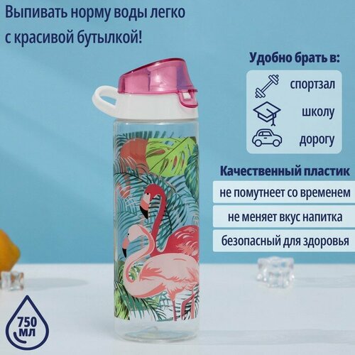 Herevin Бутылка для воды пластиковая «Фламинго», 750 мл, цвет розовый