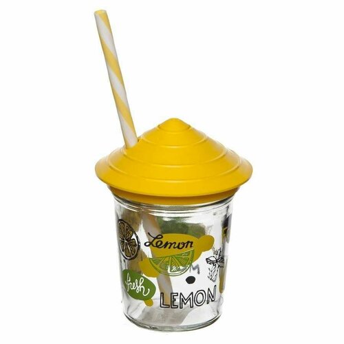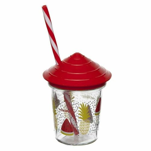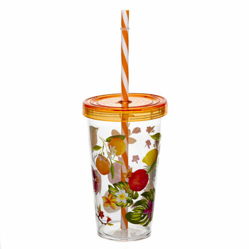 Стакан с трубочкой, 320 мл, пластик/стекло