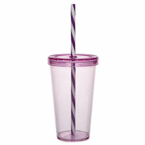 Стакан для коктейлей с крышкой и трубочкой, 450 мл, пластик, Herevin