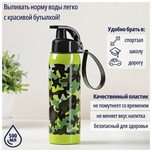Бутылка для воды пластиковая «Милитари», 500 мл, 6×6×23 см, цвет зелёный