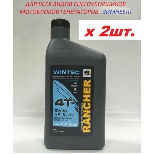 Масло зимнее! 2ШТ 4-т. п/синт. Rancher WINTEC SAE5W30 API SJ/CF 0,946 л. REZOIL для всех видов снегоубощиков и мотоблоков
