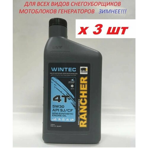 Масло зимнее! 3ШТ! 4-т. п/синт. Rancher WINTEC SAE5W30 API SJ/CF 0,946 л. REZOIL для всех видов снегоубощиков и мотоблоков