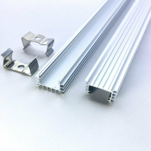 Алюминиевый профиль накладной 555x14,7x8,7мм для светодиодной ленты , 8 штук ЛОТ с креплением без саморезов